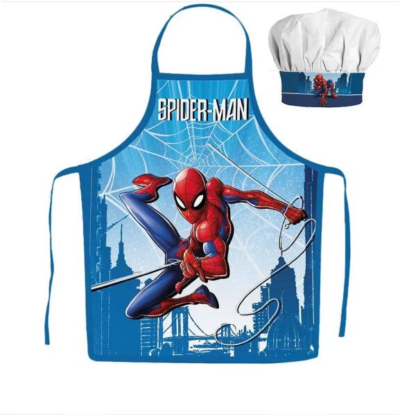 Spiderman, Pókember gyerek kötény 2 darabos szett Anyaga: 100% poliészter Szett tartalma: - 1 db kötény - 1 db kuktasapka Ajánlott 3-8 éves korig.