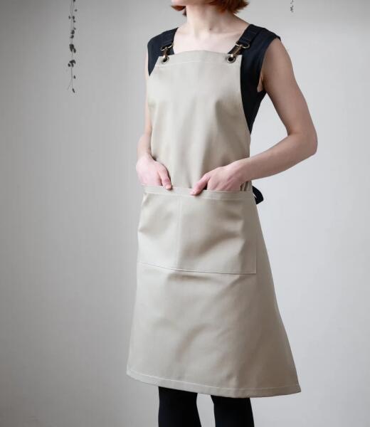 A stílusos, sokoldalú, bőr elemekkel ellátott kötény jól használható a konyhában és a műhelyben, a kertben, a grillezésnél stb. , éttermekbe és kávézókba is alkalmas, a levehető pántoknak köszönhetően könnyen karbantartható. A kötény egy osztott zsebbel és egy bőrhurokkal van ellátva az oldalán, ahová törölközőt, kesztyűt lehet tenni. Bőrszíjak A természete