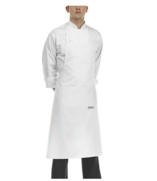 Fehér szakácskötény - magas. 65% poliészter / 35% pamut. Méretek: 90 (hosszúság) x 70 (derék) cm