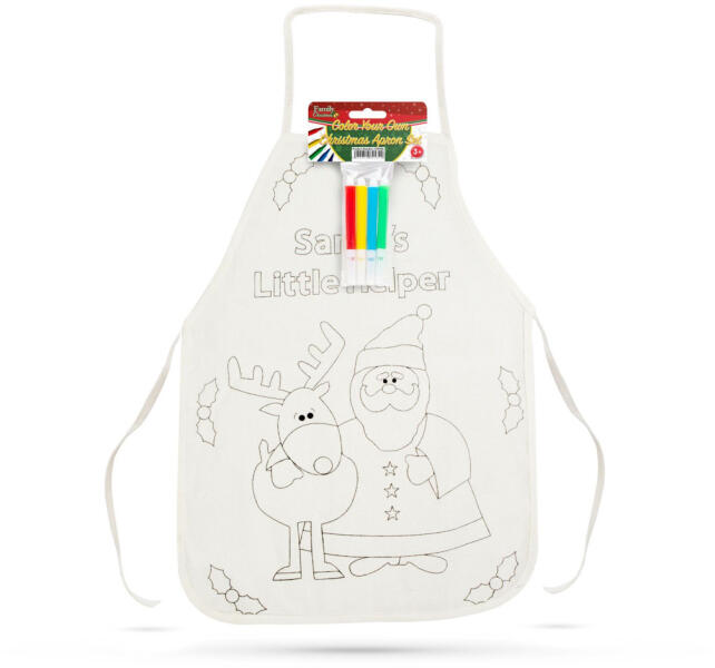 Színezhető kötény filctollal 56 x 34 cm Színezd magad kötény színes filctoll készlettel. Kettő az egyben: kötény (előke) és foglalkoztató gyerekeknek. Színezéskor a kötény és az asztal közé közé vastagabb papírt kell tenni, hogy az asztalra ne kerüljön festék. 3 féle minta 4 db filctollal Szövet anyagból Méret: 56 x 34 cm