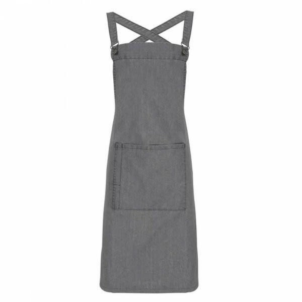 Uniszex, női, férfi kötény, szakács, pincér Premier PR129 Cross Back ’Barista’ Bib Apron -Egy méret, Grey Denim Leírás: Fabric 100% Cotton Canvas - 320gsm Denim -275gsm Supplied with self-fabric straps Features Front center pocket with built-in pen slot Dungaree style buckle fasteners Metal eyelets to the waist to facilitate ties Pocket Measurement: 26cm width. 21cm depth Alternative