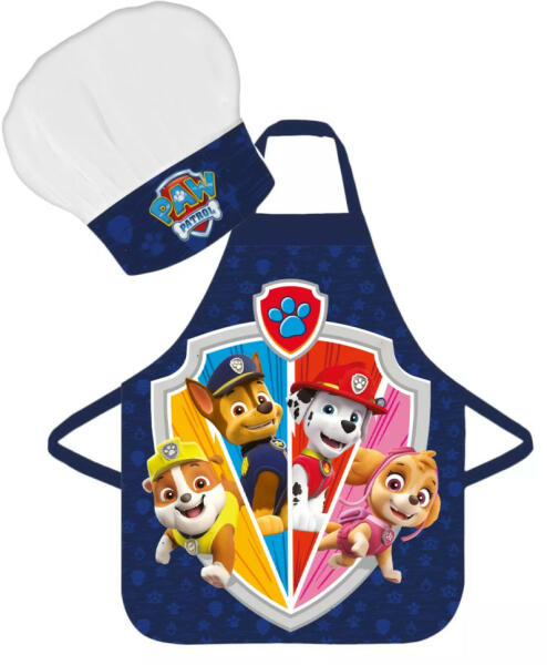 Paw Patrol, Mancs Őrjárat Shield Gyerek kötény 2 darabos szett Anyaga: 100% poliészter Szett tartalma: - 1 db kötény - 1 db kuktasapka Ajánlott 3-8 éves korig. Csomagolt termék, ajándéknak is kitűnő.
