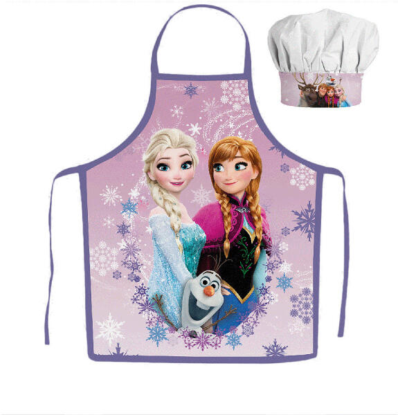 Disney Jégvarázs Frosted gyerek kötény 2 darabos szett Disney Frozen, Disney Jégvarázs gyerek kötény 2 darabos szett Anyaga: 100% poliészter Szett tartalma: - 1 db kötény - 1 db kuktasapka Ajánlott 3-8 éves korig.