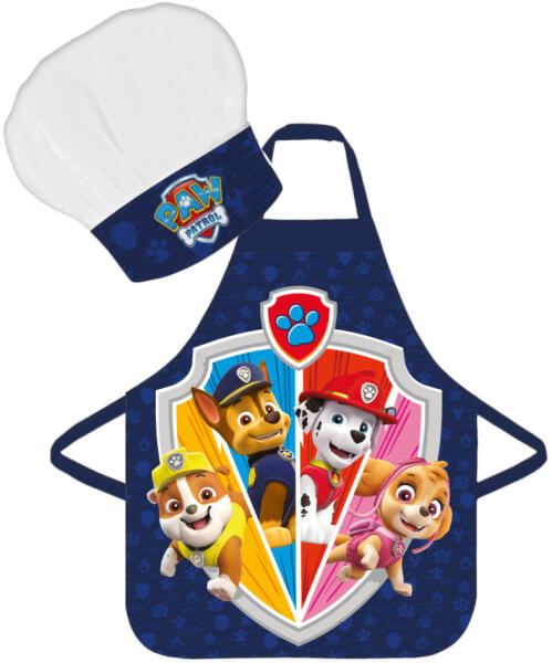 Paw Patrol, Mancs Őrjárat Shield Gyerek kötény 2 darabos szett Anyaga: 100% poliészter Szett tartalma: - 1 db kötény - 1 db kuktasapka Ajánlott 3-8 éves korig. Csomagolt termék, ajándéknak is kitűnő.