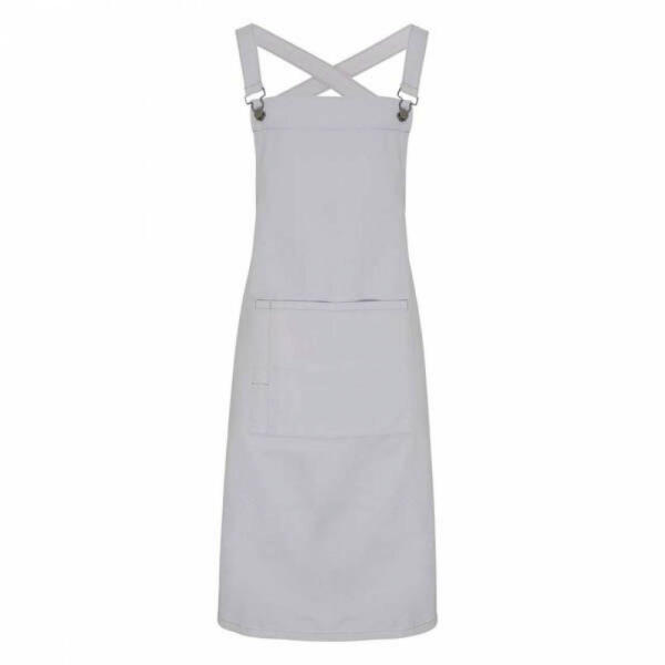 Uniszex, női, férfi kötény, szakács, pincér Premier PR129 Cross Back ’Barista’ Bib Apron -Egy méret, Silver Leírás: Fabric 100% Cotton Canvas - 320gsm Denim -275gsm Supplied with self-fabric straps Features Front center pocket with built-in pen slot Dungaree style buckle fasteners Metal eyelets to the waist to facilitate ties Pocket Measurement: 26cm width. 21cm depth Alternative inte