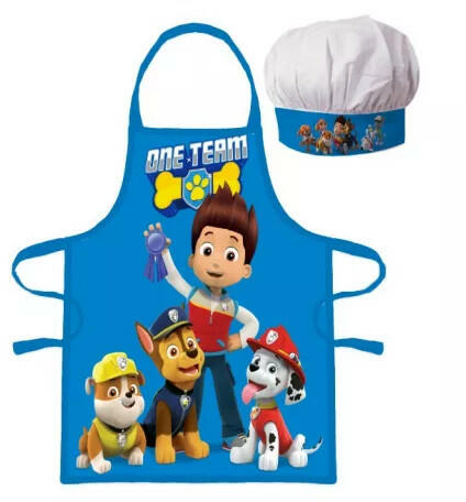 Paw Patrol Mancs Őrjárat gyerek kötény 2 darabos szett Anyaga: 100% poliészter Szett tartalma: - 1 db kötény - 1 db kuktasapka Ajánlott 3-8 éves korig.