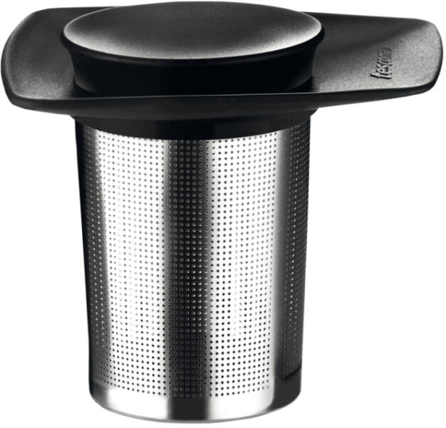 Tescoma TEO teaszűrő fedővel Kiválóan alkalmas szálas és gyógynövényteák áztatására bögrében vagy teáskannában. Helyezze a szűrőt a bögre felső szélére, szórja bele a teát, zárja le a fedővel és hagyja ázni. Miután a tea kiázott, használja a fedőt a szűrő alátétjeként. Első osztályú rozsdamentes acélból és ellenálló műanyagból készült, mosogatóg