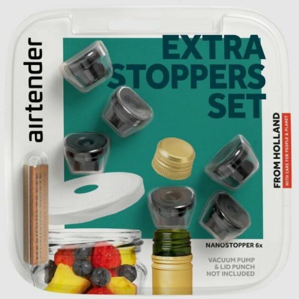 Bővítse meglévő Airtender vákuumkészletét 6 további dugóval. Ezek a Nanostopperek az elektromos Airtenderrel és az Airtender vákuum kézi pumpával egyaránt használhatók. Nanostopper vákuumjelzővel Újrafelhasználható és mosogatógépben mosható BPA és BPS mentes Az elektromos Airtenderrel is működikTartalma: 6 db Nanostopper