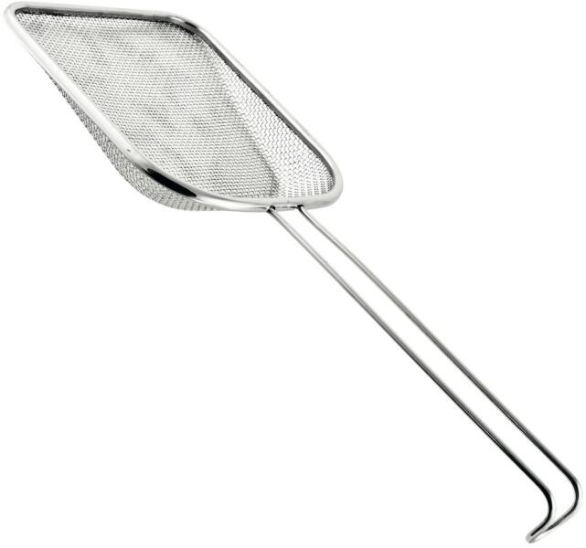 Kiválóan alkalmas sült vagy fritőzött ételek kimeréséhez, szűréséhez és kiszedéséhez, első osztályú rozsdamentes acélból készült, mosogatógépben mosható. 3 év garancia.