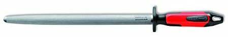 A hosszú idõ óta jól bevált F. Dick élezõ acélpenge, mely nedves és zsíros állapotban egyaránt csúszásmentes. Markolata ergonomikus kialakítású, ujjvédelemmel, a fogantyú végén fűzõlyuk található. Az eszköz biztonságos és higiénikus, a hatályos élelmiszeripari szabályozásoknak megfelelõ. (DICK)