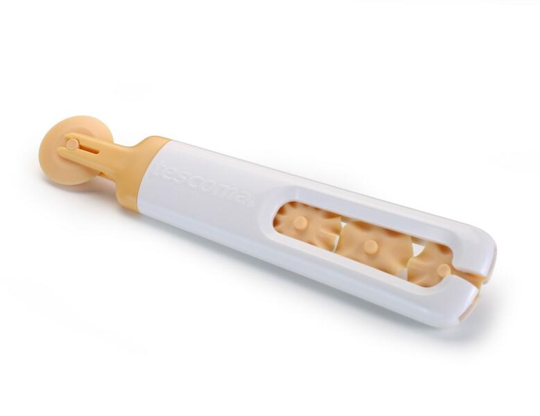 A 4 cserélhető kerékkel ellátott derelye metélő kiválóan alkalmas a tészta elvágására egyenes vagy különböző hullámos széllel. Minden típusú alátéthez és formához használható, mivel a derelye metélő azok felületét nem károsítja. Első osztályú ellenálló műanyagból készült, mosogatógépben tisztítható. 3 év garancia.