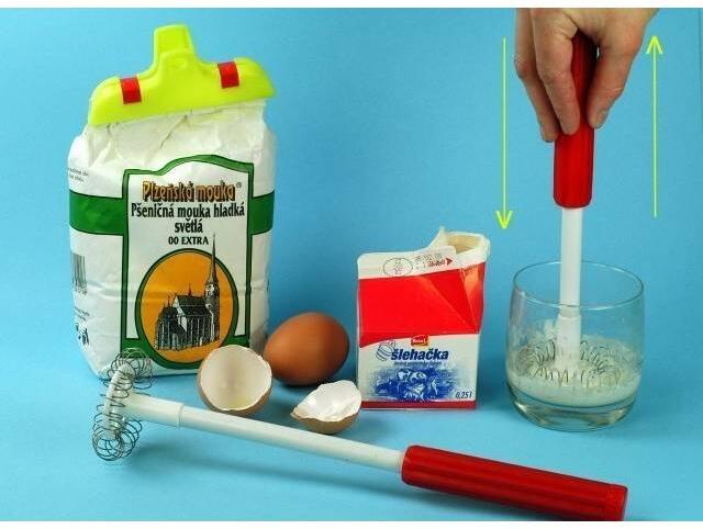 A kézi habverő a nyél megszorításával pörög. Ez veri fel a tejszínhabot és a tojásfehérjét.