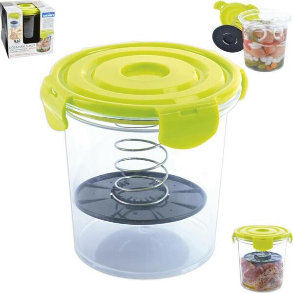 Szorító mechanizmussal ellátott műanyag edény az intenzív pácoláshoz.