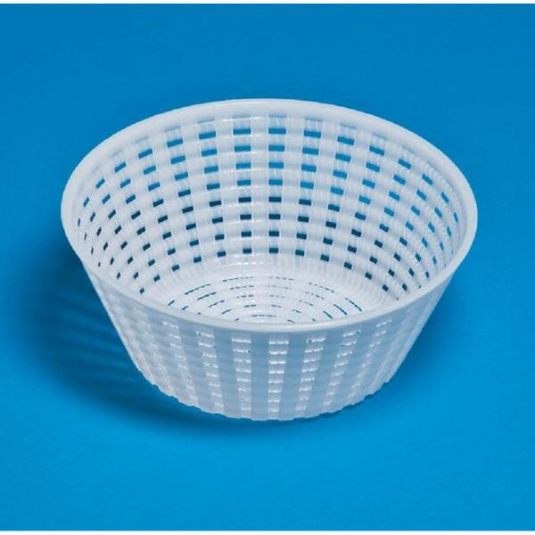 Műanyag forma Canestrato sajt előállításához. Méretek: 8 x 7 cm.