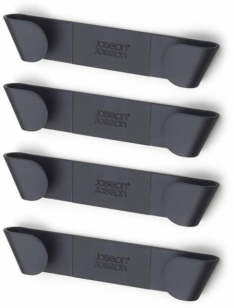 4 darabos, praktikus, öntapadós JOSEPH JOSEPH CupboardStore fedéltartó készlet az ajtók/fiókok belső oldalára történő felhelyezéshez. Könnyen felszerelhető öntapadó 3M szalaggal. A tartók a 16-24 cm átmérőjű, szokásos formájú fedelekhez készültek.