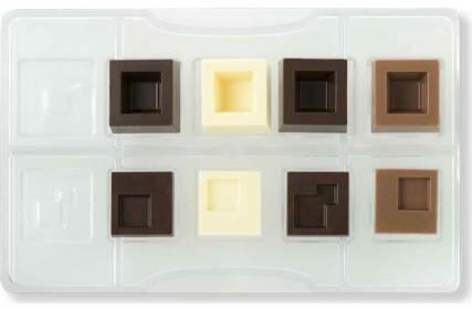 A 20 x 12 x 2,3 cm-es négyzet alakú csokoládéforma professzionális és amatőr cukrászok számára egyaránt alkalmas.
