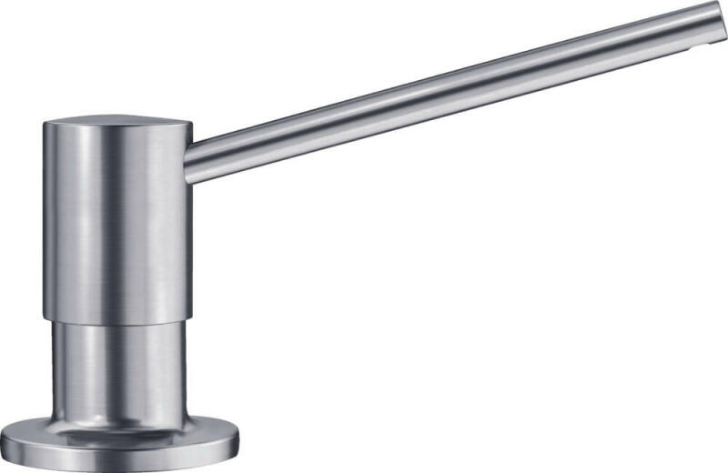Praktikus mosogatószer adagoló BLANCO mosogató tálcákhoz Tulajdonságok: króm / selyemfényű rozsdamentes / fényes rozsdamentes felületben kapható mosogató tálcába és munkapultba egyaránt beépíthető felülről kényelmesen megtölthető praktikus kiegészítő űrtartalom: 300 ml maximum 4 cm-es munkapultba lehet beépíteni munkapult feletti magasság: 84 mm hosszúság: 118 mm