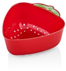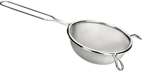 A rozsdamentes acélból készült, kampókkal ellátott szűrő jól tartja a tálat.
