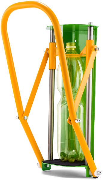 Univerzális ALU & PET palackprés Fémből készült, kézi palack tömörítő, melynek segítségével PET palackok és italos alumínium dobozok nyomhatóak össze. Általánosságban elmondható, hogy az összepréselt műanyag üvegek és alu dobozok ötször kevesebb helyet foglalnak. Max. palack méret: 330 x 120 mm (2,5 literes ásványvizes flakon belefér) A csomag tartalmazza a pal