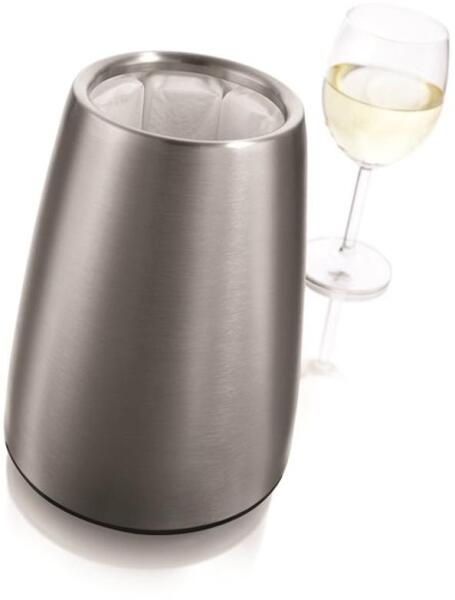 Vacu Vin borhűtő inox Az elegáns rozsdamentes borhűtő segítségével gyorsan, jég nélkül és könnyedén tudja lehűteni kedvenc borát. Tegye a hűtőmandzsettát a mélyhűtőbe, majd helyezze a tartójába! Az üveg tartalmát 5 perc lehűti, és órákon át hidegen tartja. Aktív hűtő jég nélkül 5 perc alatt lehűti az italt Nem foglalja a helyet a hűtőben