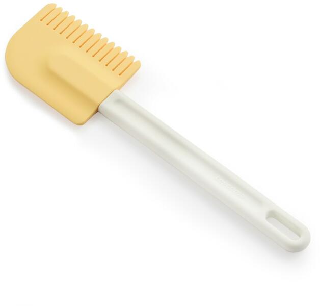 Tescoma DELÍCIA Szilikon kenőlapát 25 cm Minden típusú edényhez megfelel, kiválóan alkalmas tapadásmentes bevonatú edényekhez, melyek felületét nem károsítja. Hőálló szilikonból készült (220°C), a nyele ellenálló műanyagból. Mosogatógépben tisztítható.