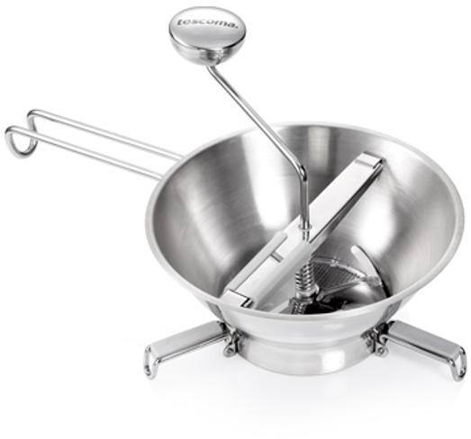 Tescoma GrandChef Passzírozó - 428672 Zöldségek és gyümölcsök egyszerű és gyors passzírozására szolgál. Kitűnően alkalmas paradicsomsűrítmény, krumplipüré, zöldség- és gyümölcspüré készítésére. A szett tartozékai 3 passzírozó tárcsa, egy passzírozó lapát, mely hasznos nagy mennyiségű gyümölcs vagy zöldség akadálymentes passzírozása esetén. Anyaga el