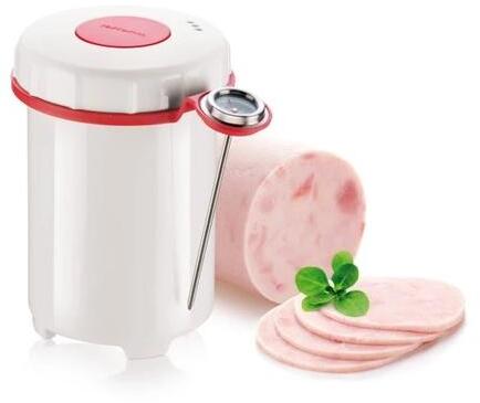 Szeretnél otthon felvágottat készíteni? Ez a Tescoma Presto sonkakészítő hőmérővel a megfelelő eszköz a házi sonkakészítésre. ATescoma Presto hőmérős sonkakészítő előnyei: Univerzális hőmérővel van ellátva, mely segítségével folyamatosan ellenőrizni tudod a készülő sonkát. Hőálló műanyagból és sugárzásálló szilikonból készült. A hőmérő, és annak