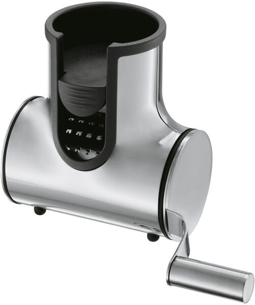 A kiváló minőségű, dobos RÖSLE sajtreszelő ideális a sajt és a csokoládé gyors és hatékony reszeléséhez - igazi látványosság a konyhában és az étkezőasztalon. A finom reszelőbetét élezett reszelőlemezzel a legjobb eredményt biztosítja. Egyszerűen helyezze be a sajtot, tegye rá a nyomófedelet, nyomja le a hüvelykujjával, és a hajtókar elforgatásával reszelje le