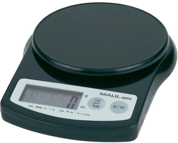 Digitális asztali mérleg, levélmérleg fekete színű 2kg/1g Maul MAULalpha 2000G Asztali mérleg Energiatakarékos Törésbiztos műanyag Bevezetõ modell a levélmérlegek kompakt csoportjába. A mérleget masszív műanyag ház és kis energiafogyasztás jellemzi. Jellemzõk: Kikapcsoló automatika Automatikus nullázás Tára funkció Súly mértékegység átkapcsolható (g/oz). Műszaki a