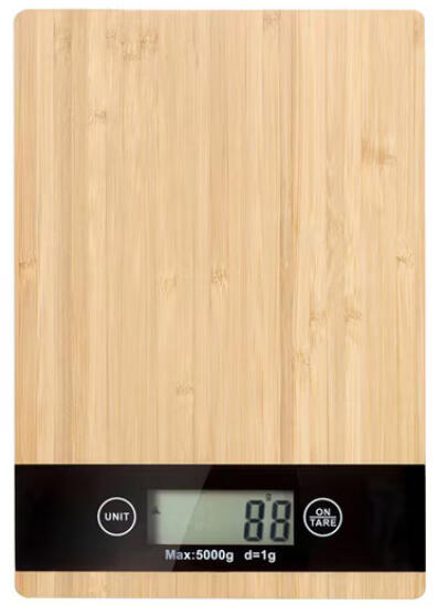 Verk konyhai mérleg, bambusz fa, LCD képernyővel, kapacitás 5 kg, 23x16 cm Bambusz fából készült mérleg eredeti kivitelezéssel, nélkülözhetetlen bármely konyhában. A konyhai mérleg nagy és könnyen olvasható kijelzővel rendelkezik. Automatikus leállítási funkcióval van felszerelve, melynek köszönhetően a mérleg alvó üzemmódba lép, amikor nincs használatban. A mérle