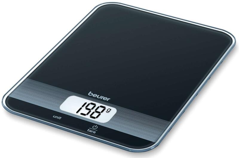 Beurer KS 19 slate konyhai mérleg BEURER KS 19 Slate konyhai mérleg KS19 Modern szenzorgombos kezelés Könnyen tisztítható üvegfelület Teherbírás: 5 kg Beosztás: 1 g Átállítás g, ml, oz, fl. oz, lb:oz között Tára hozzámérési funkció Kikapcsoló automatika, túlterhelés kijelzése Méret: 20 x 14,5 x 1,7 cm Kijelző mérete: 4,6 x 2,4 cm Számjegyek mérete: 20 mm 1 x 3 V CR20