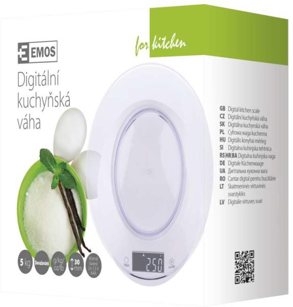 Emos DIGITÁLIS KONYHAI MÉRLEG EV004 Rövid termékleírás A konyhai mérleg minden háztartás praktikus kiegészítője. Stílusos kialakításának köszönhetően minden lakásba kitűnően illik. Termék jellemzoi termék konyhai mérleg szín fehér max. terhelés 5 kg Bluetooth nem túlterhelés jelző igen BMI – zsír, víz és izom mérése nem újramérés funkció igen a mérleg fel