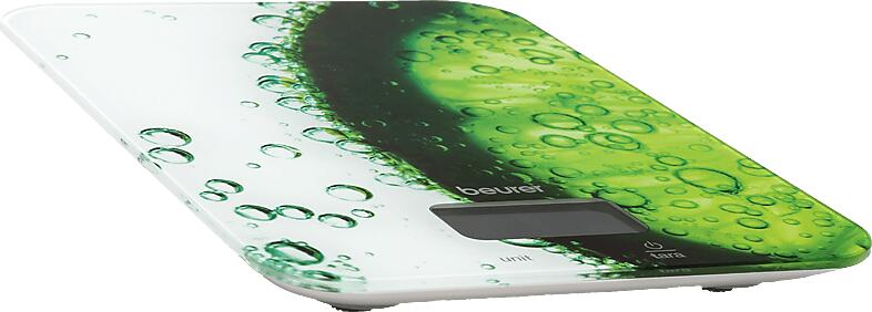 Modern szenzorgombos kezelés Könnyen tisztítható üvegfelület Teherbírás: 5 kg Beosztás: 1 g Átállítás g, ml, oz, fl. oz, lb:oz között Tára hozzámérési funkció Kikapcsoló automatika, túlterhelés kijelzése Kijelző mérete: 4,6 x 2,4 cm Számjegyek mérete: 20 mm