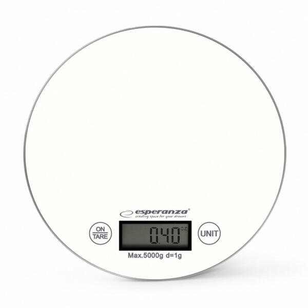 Leírás Rendkívül pontos, stílusos kialakítás, rendkívül vékony készülék tok, nagyméretu kijelzo a könnyebb használathoz. Alkalmas az összes száraz és folyékony összetevo és az élelmiszer mérlegelésére. Nagy pontosságú méréssel felszerelt. Érintogombok Maximá lis kapacitás: 5000 g Osztás: 1g Négy mértékegység: g / lb / oz / kg Tára funkció Túlterhelés jelzo