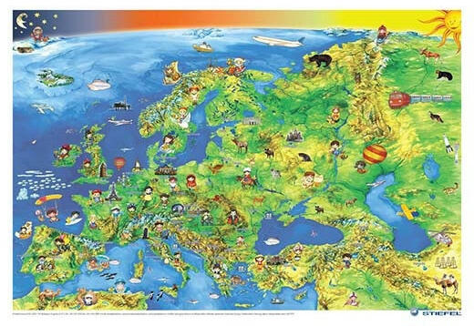 Könyökalátét STIEFEL Európa gyerektérkép Részletes Európa térkép, melyen az Uniós ismeretek is megtalálhatóak. A gyerektérkép bohókás piktogramjai játékosan segítik átadni az ismereteket.