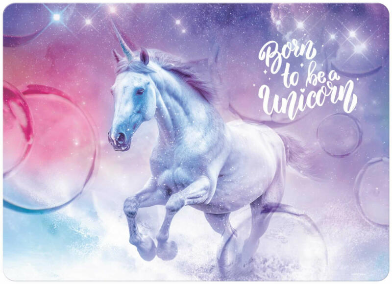 Unikornis asztali alátét, 30x40cm, JR15, lila. A második képen az alátét hátulja látható.