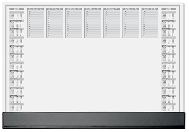 Kiváló minőségű, 80 g / m2-es papírból készült íróasztal könyöklő merev hátlappal és praktikus szamárfül védővel. - 2 éves naptárral - heti tervezővel - négynyelvű: angol, német, francia és holland - 40 lap