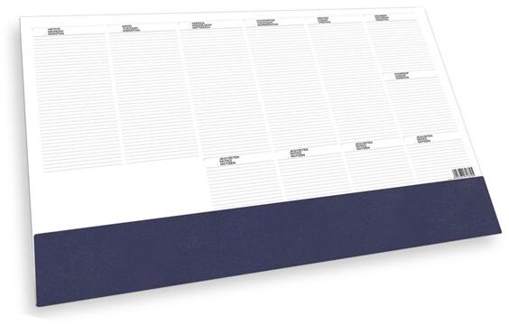 Fehér tömbös, 26 letéphető lapot tartalmazó asztali könyöklő. Szitázással, présfólia- és vaknyomással emblémázható. Naptárbeosztása: heti.