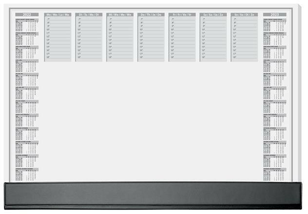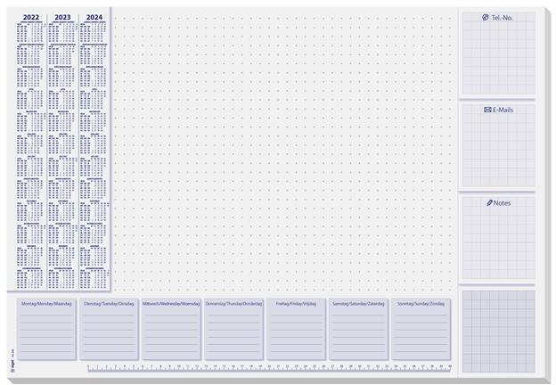 Könyökalátét, 595x410 mm, 2 éves és heti tervezővel, szamárfül védővel, SIGEL Kiváló minőségű, 80 g / m2-es papírból készült íróasztal könyöklő merev hátlappal és praktikus szamárfül védővel. - 2 éves naptárral - heti tervezővel - négynyelvű: angol, német, francia és holland - 40 lap