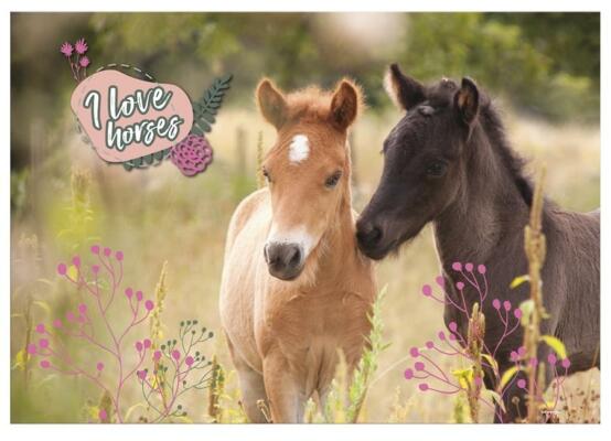 Kemény kartonból készült I love horses lovas asztali könyöklő - Virágok között amellett, hogy feldobja a szoba dekorációját, védi is az íróasztalt a mindennapos használat során.