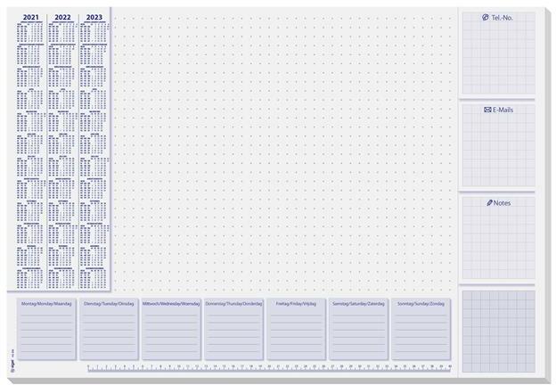 Kiváló minőségű, 80 g / m2-es papírból készült íróasztal könyöklő merev hátlappal. - 3 éves naptárral - heti tervezővel - háromnyelvű: angol, német és holland - 30 lap Gyártó/első EU forgalmazó elérhetősége: SIGEL GmbH Baeumenheimer Strasse 10, 86690 Mertingen, Germany sandra. geist@sigel. de www. sigel-office. com