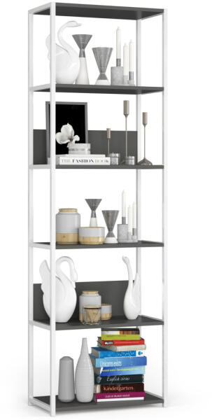 Modern, loft stílusú fém polcos állvány 6 szürke polccal és fehér fémvázzal. Ideális választás otthoni vagy irodai tároláshoz, amely egyesíti a funkcionalitást és az elegáns megjelenést. Stílusos tárolási megoldás modern otthonokbaEz a loft stílusú polcos állvány tökéletes kombinációja a praktikusságnak és a modern designnak. A fehér fémváz és a szürke polcok