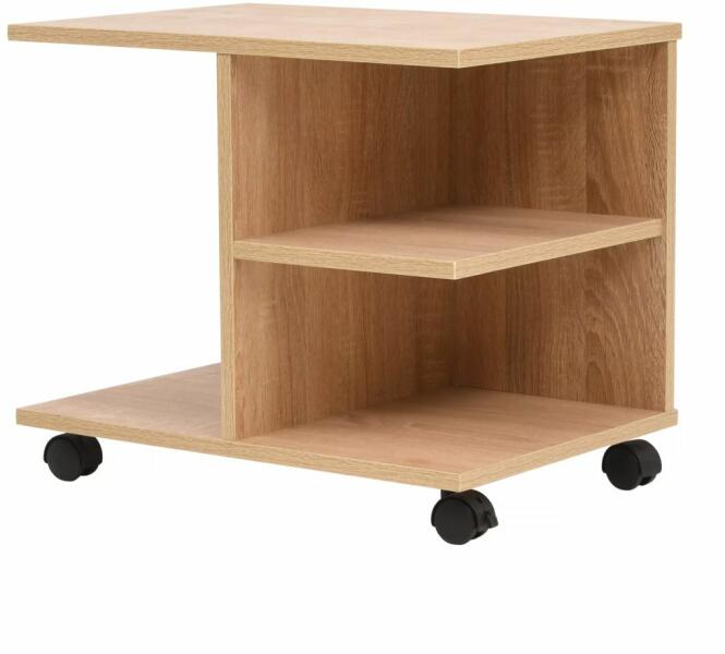 Modern gurulós polcunk praktikus kialakítással bír, és nagyszerű kiegészítője lesz tanulószobájának, irodájának vagy nappalijának. Akár kisasztalként is használható. A tároló melamin bevonattal ellátott faforgácslap vázzal rendelkezik, mely könnyen tisztítható. A masszív asztallap ideális különböző tárgyak, például könyvek vagy laptopok tárolásához. Alatta e