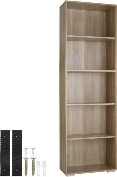Színe: sonoma-tölgyAnyaga: forgácslapMérete: 80 x 24 x 96 cm (Szé x Mé x Ma)3 nagyobb és 6 kisebb rekesszelTérelválasztóként is használhatóAz összeszereléshez szükséges tartozékokat mellékeljük Letisztult, klasszikus kidolgozásának köszönhetően ez a könyvszekrény dekoratív és praktikus kiegészítője lesz otthonának. Ez a szekrény forgácslapból készült, mely er