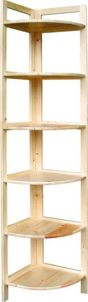 Tömör fenyőből készült termék. Lapraszerelve érkezik! A Janó sarokpolc 3-as verziója tömör fenyőből készült, ami tartósságot és minőséget garantál. Ez a polc lapraszerelve érkezik, így könnyen összeszerelhető. Ideális választás lehet kisebb szobákba vagy helyiségekbe, és kiváló megoldást nyújt a sarokok kihasználatlan területeinek tárolására. A polc méret