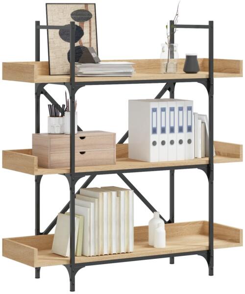 Ez a könyvszekrény tökéletesen beleillik otthonába, modern és ipari megjelenést kölcsönöz. Ez a könyvespolc minőségi forgácslapból és fémvázból készült, mely erőt, tartósságot és hosszan tartó használatot kölcsönöz neki. 3 polccal rendelkezik, melyek bőséges helyet kínálnak könyvek, magazinok és egyéb dísztárgyak számára. A könyvállvány nedves ruhával k