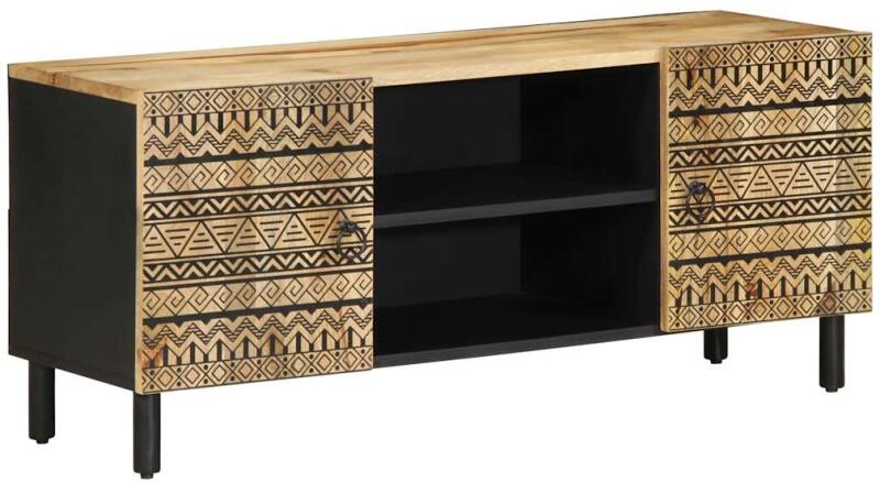 Ez a masszív, ipari stílusú TV-szekrény időtlen kiegészítője lesz nappalijának vagy hálószobájának. Robusztus és stabil: A tömör mangófa egy erős, trópusi keményfa, mely rendkívüli tartóssága és szilárdsága miatt különösen kedvelt a bútorgyártásban. A fa gyönyörű erezetének köszönhetően minden darab kissé különbözik a többitől. Bőséges tárolóhely: