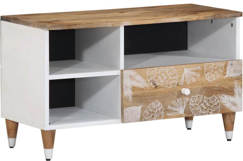 Ez a bőséges tárolóhellyel rendelkező TV-szekrény nappalija vagy hálószobája praktikus és szemet gyönyörködtető kiegészítője lesz. Robusztus és stabil: A tömör mangófa egy erős, trópusi keményfa, mely rendkívüli tartóssága és szilárdsága miatt különösen kedvelt a bútorgyártásban. A fa gyönyörű erezetének köszönhetően minden darab kissé különbözik a t