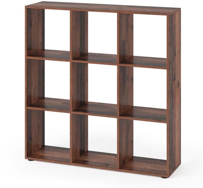 Ez a 9 rekeszes térelválasztó polc stílusos és elegáns teret hoz létre az Ön számára. Díszítse szobáját ezzel az elegáns bútorral és tágas, nyitott polcokkal. Akár könyvespolcként, akár tárolópolcként az emléktárgyai részére. Anyag: 16 mm forgácslap, melamin bevonat Szín: old style Modern térelválasztó polc Négy lábbal, padlóvédővel Méretek: 104 x 108 x 29 c