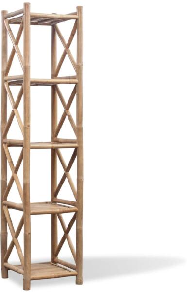 Anyag: BambuszMéret: 35 x 35 x 152 cm (Ho x Szé x Ma)5 szintes Ez az 5 szintes polc használható fürdőben törölközőtartóként nappaliban könyvespolcként, vagy az előszobában virágtartóként. A kompakt és egyszerű tervezése ideálissá teszi kisebb helyekre is. Az hiteles bambusz színe egy tropikus jelleget ad berendezéséhez. Ez az 5 szintes polc kiváló minőségű bambuszb